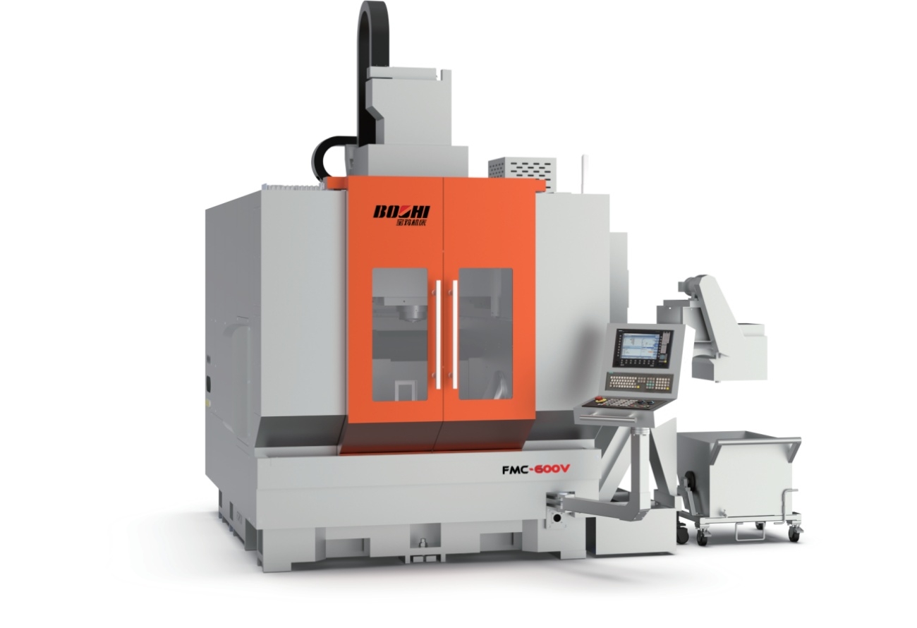 The FMC-600V is a high-end 5-axis vertical Machining Center. The machine tool adopts the double column elevated structure, vertical processing, equipped with the cradle style double swing rotary table; Thought the twice clamping operations can complete the complete processing of complex precision parts, greatly improving production efficiency, product quality, and reducing production costs, Mainly used for efficient five axis machining of complex shaped parts such as gas turbines, compressor impellers, and small molds, it is an essential equipment in industries such as auto industry, and molds. This machine is currently a typical model widely used in 5-axis simultaneous machining .